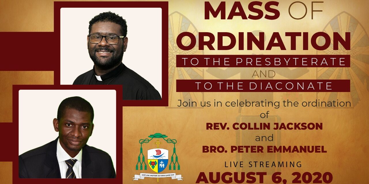 Join us as we celebrate the ordination to the presbyterate and to the diaconate of Rev. Collin Jackson and Bro. Peter Emmanuel on August 6, 2020 beginning at 5:00 p.m.
